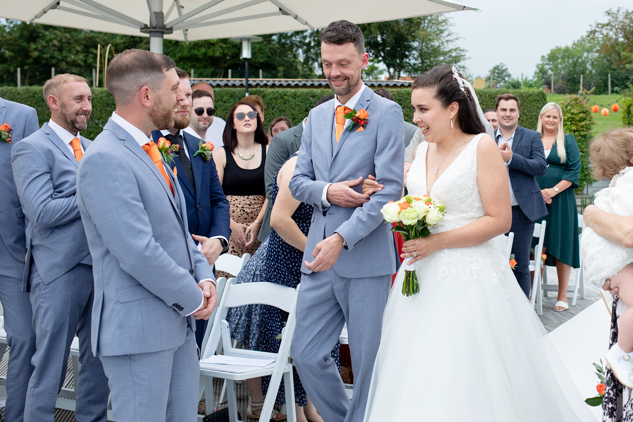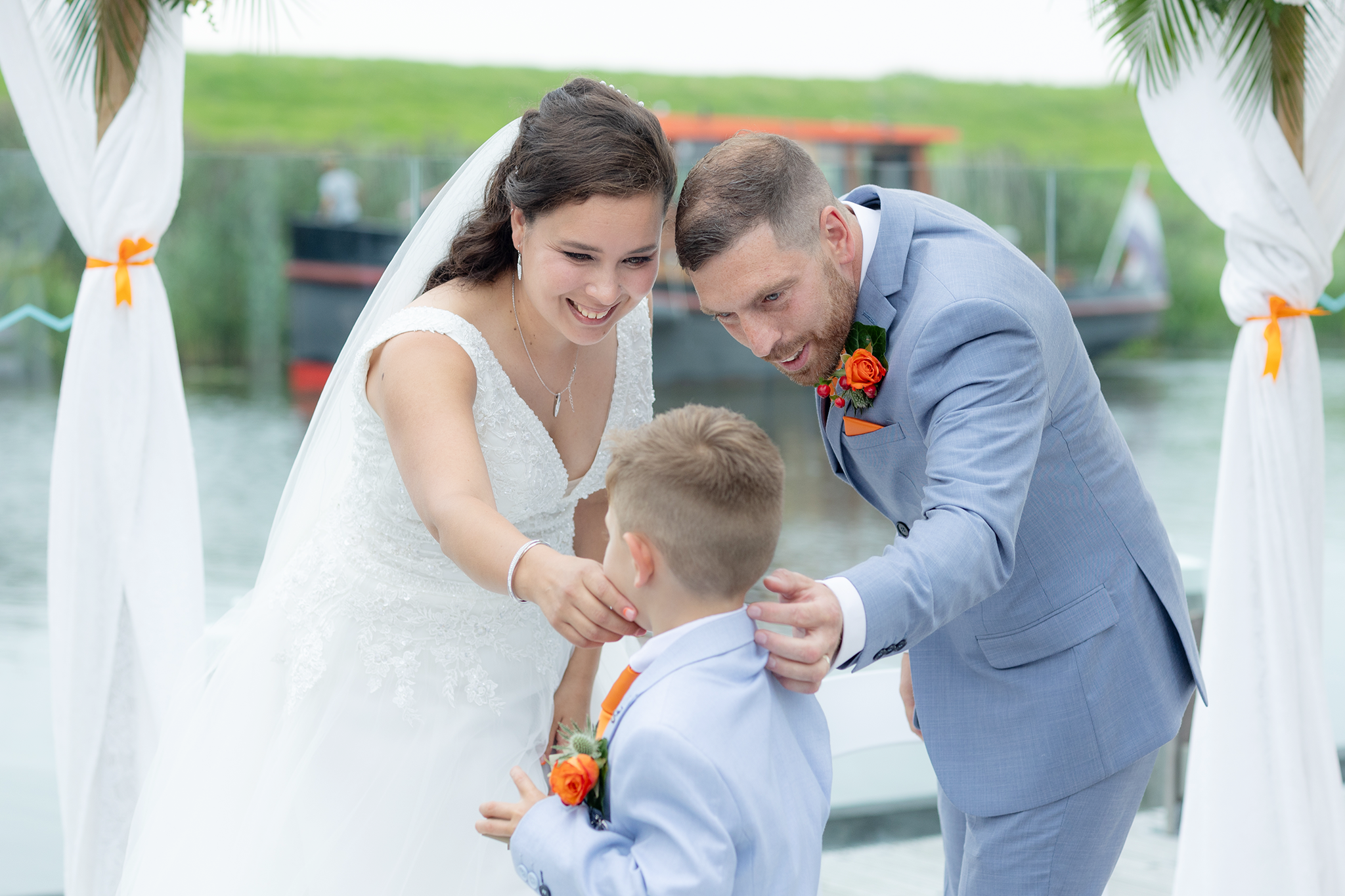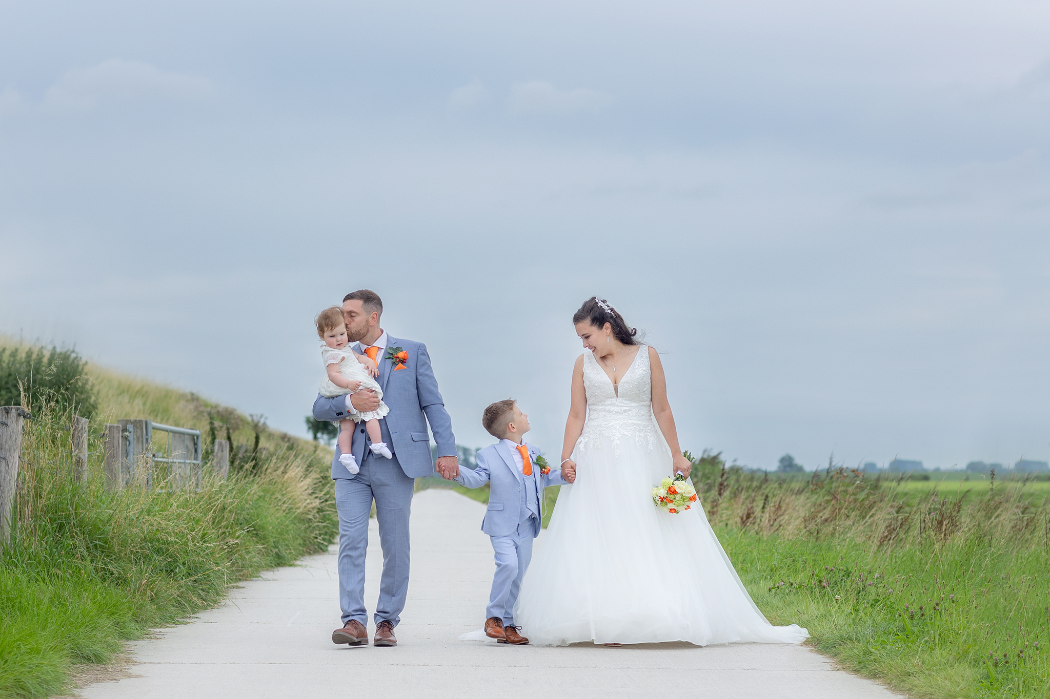 Zo’n trouwdag is toch altijd een kijkje in het leven van mensen. In de voorgesprekken op de trouwdag aan bespreken we a het één en ander, en op de trouwdag hoor je ook mooie, verdrietige en lieve momenten uit het leven van twee mensen in het bijzonder en familie en vrienden die om hen heen staan. Ben & Hedwig wonen in Engeland. Ze hebben elkaar jaren geleden ontmoet aan de andere kant van de wereld tijdens een wereldreis. Onze gesprekken in het voortraject hadden plaats via Teams. Een Engels- Nederlandse bruiloft zou het worden. En hoewel wel buurlanden zijn, zit er toch aardig wat verschil in hoe zo’n bruiloft dan georganiseerd wordt. Bruidsmeisjes en best man bijvoorbeeld. Elementen die vooral voorafgaand aan de bruiloft al zo aanwezig en zo leuk zijn. Ben en Hedwig hebben er een mooie, sfeervolle combinatie van weten te maken. De persoonlijke noot lag bij hun vriend die de huwelijksvoltrekking grotendeels mocht doen. En dan krijg je echt een kijkje in hoe hun levens elkaar kruisten en ze staan waar ze nu staan met hun twee lieve kindjes. Aan speeches geen gebrek deze bruiloft, maar allemaal even grappig, oprecht en liefdevol. Wat een hoop zegt over dit lieve bruidspaar zelf!