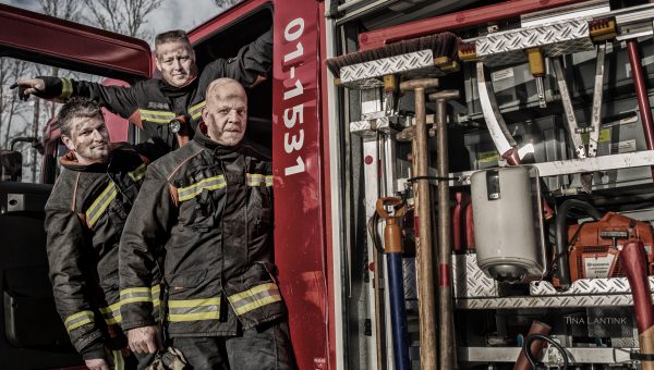 Op dag twee zag het er heel anders uit. Op het terrein van de gemeentewerken in Winsum, met brandweerwagen, sloopauto’s, water, rookmachines, zwaailampen, de hele rataplan. Daar voelden de mannen zich een stuk meer in hun element dan de dag ervoor. Alles wat aanwezig was in de brandweerwagen hebben we ook wel gebruikt tijdens de fotoshoot geloof ik. Wát een ontzettend leuke opdracht was dit!