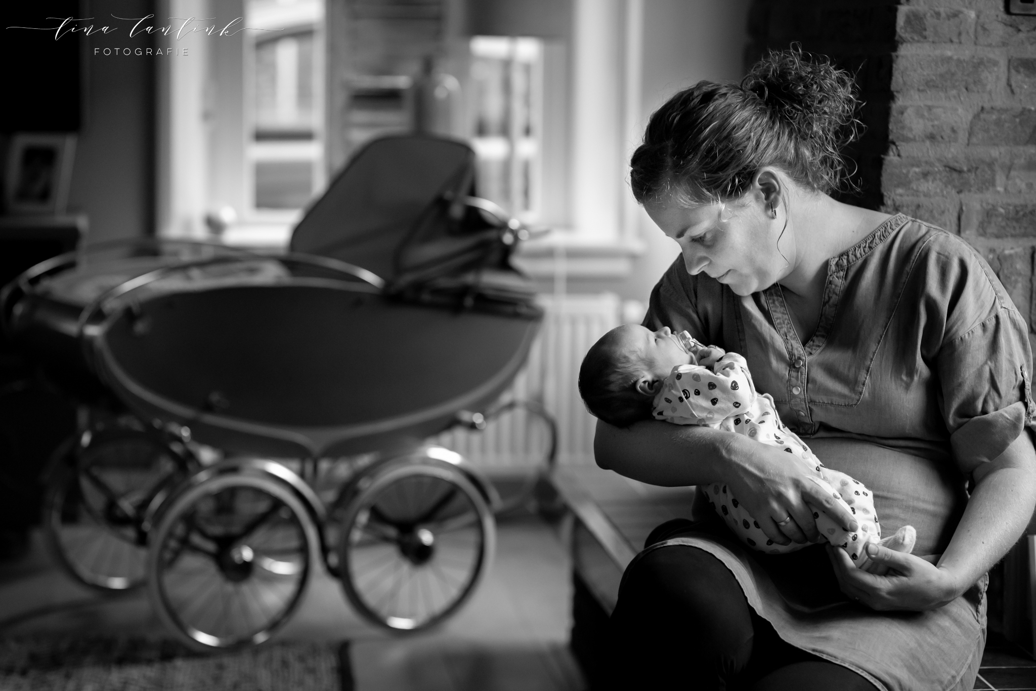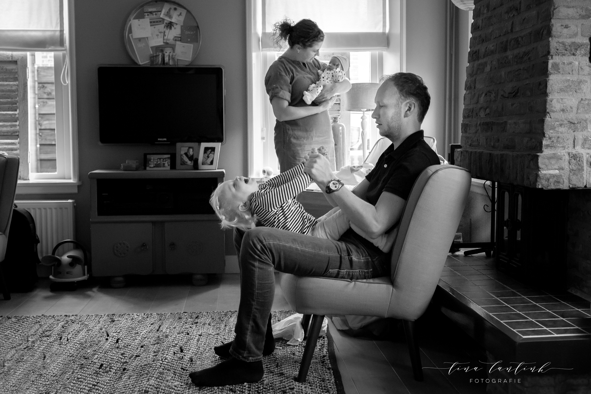 Met regelmaat krijg ik vraag naar een newborn fotoshoot. Een fotoshoot van een kindje vlak na de geboorte. Een ‘echte’ newborn shoot wordt vaak binnen een week na de geboorte gemaakt. Met de zoekterm ‘newborn’ op Google vind je de meest uiteenlopende foto’s van piepkleine baby’s, veelal slapend, heerlijk opgekruld en aangekleed met bijzondere outfits. Prachtige foto’s. Maar….. Kom daarvoor niet bij mij. Ik ben niet de fotograaf die dit soort gestylde shoots kan doen voor je. Veel liever fotografeer ik met zulke kleintjes (ook met grotere kinderen trouwens) de realiteit. De kinderen zoals ze op dat moment zijn. Meteen na mijn vakantie kreeg ik hiervoor de mogelijkheid van Antine & Jan Willem om dit bij hen thuis te komen doen. Kleine Suze was geboren en ik mocht bij haar thuis een day in the life shoot maken. Superleuk! Gewoon een beetje meedraaien met het gezin gedurende een bepaalde tijd en vastleggen wat er gebeurd. Het voeden, knuffelen, ‘spelen’ met grote zus Milou, slapen, wakker zijn. Kortom; alles wat er in een gezin gebeurt waar kleine kinderen zijn. Zulke opdrachten passen me veel beter. Het pure gezinsleven weergeven. Een dagelijkse dag momenteel voor hen, maar een prachtige herinnering voor straks. En wat fijn dat ik dit bij Jan Willem en Antine heb mogen doen!