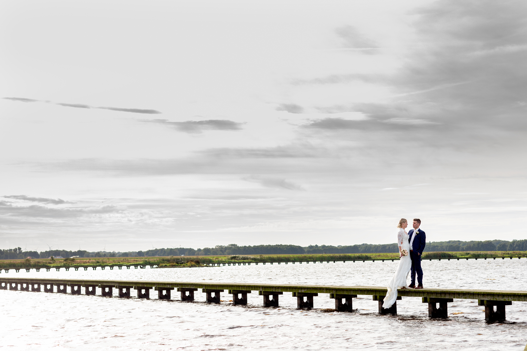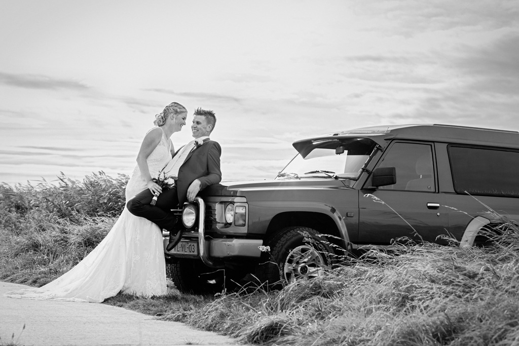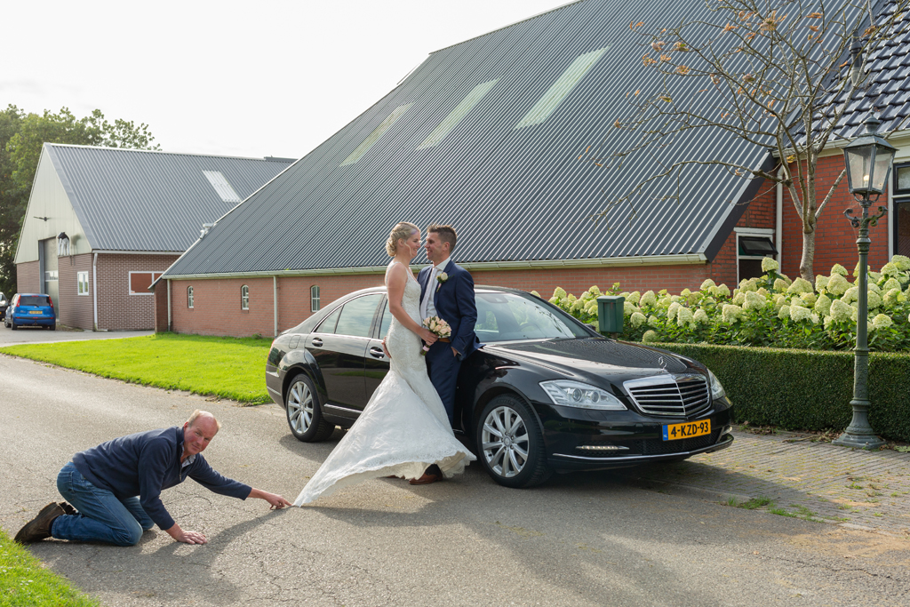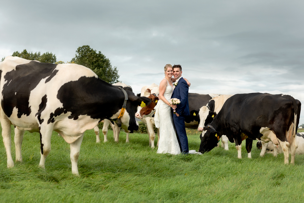 Op 1 oktober hing de herfst al een beetje in de lucht. Mijn dag startte op de boerderij van Tanja’s ouders. Nadat Eric zijn opwachting gemaakt had zijn we de ‘achtertuin’ van Tanja’s ouders ingegaan: Roegwold. Met de 4wd het hobbelpad over met de fotograaf in de kofferbak op naar de steigers, het riet, het water, de opkomende zon en de harde wind over de open vlakte. Wat een prachtplek! En vanaf Roegwold naar de boerderij van Eric en Tanja waar het grootste deel van de dag plaats zou vinden. Een warm welkom stond Eric & Tanja te wachten van vele buren die deze dag ook niet ongemerkt voorbij wilden laten gaan.