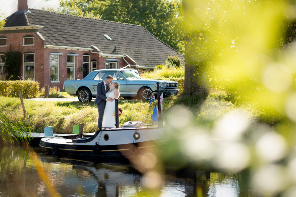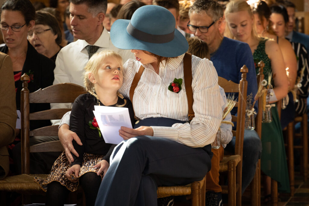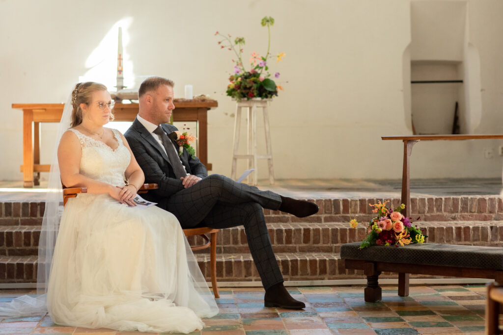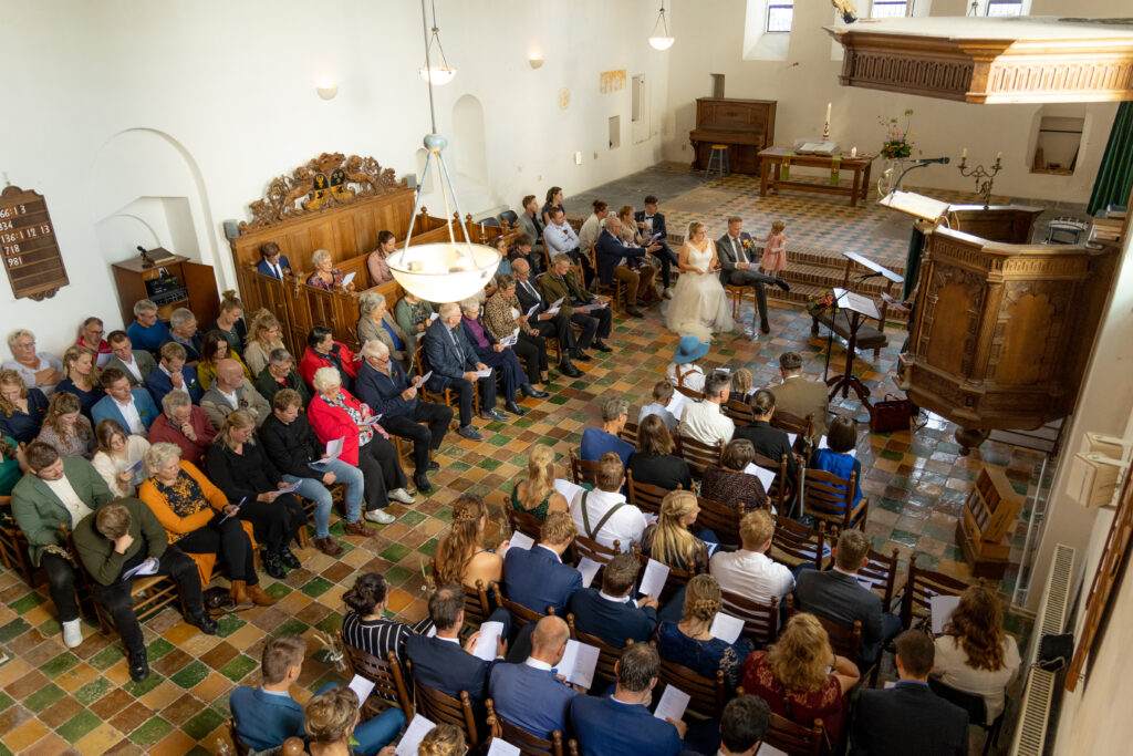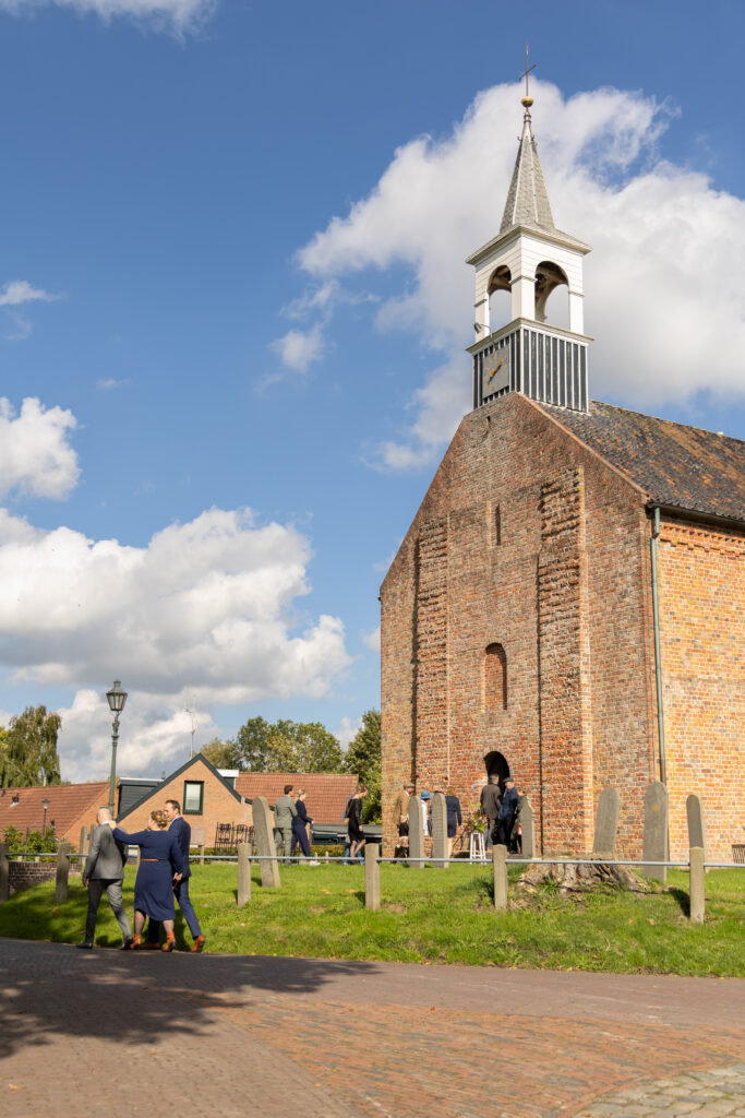 Twee jaar geleden hadden Harm-Jan & Elles alles uitgedacht en toen kwam C…. Na een paar keer bijschalen van de plannen bleef het minimale over van wat mogelijk was. Een corona proof bruiloft, met minimaal aantal gasten, een drive by corsage punt, alle gasten een borrelplankje mee naar huis zodat ze ’s avonds op Harm-Jan en Elles konden proosten. “Wanneer dit allemaal voorbij is gaan we het overnieuw doen, met kerkelijk huwelijk en een groot feest.” Dat is wat ze meteen zeiden. Maar in twee jaar tijd kan er een hoop veranderen. En waar ik bij andere bruidsparen ook wel andere inzichten zag wat van invloed was op hun trouw- of toekomstplannen veranderde er bij Harm- Jan en Elles ook het één en ander. Abel werd geboren! Maar het voornemen om hun huwelijk nog een keer af te maken met een inzegening én groot feest bleef staan. En zo was het in september tijd voor deel 2 van hun huwelijk. En waar het de vorige keer druilerig was, was het vandaag een prachtige nazomerdag ver in september. Dus ook de zon was bewaard voor deze deel 2. En een gave dag was het, met alles erop en eraan waar ze twee jaar op hadden moeten wachten. ínclusief de leuke (of wellicht uitdagende) stukjes van familie met wedstrijd tom pouce eten, biertje atten, vissen en spijker slaan. En daarna dansen, dansen en nog eens dansen!