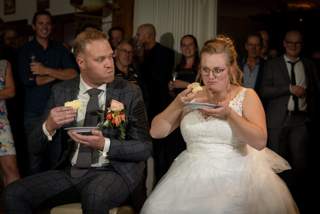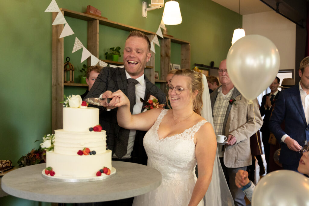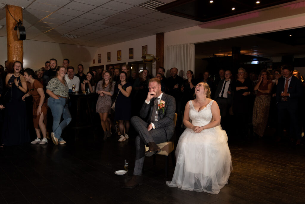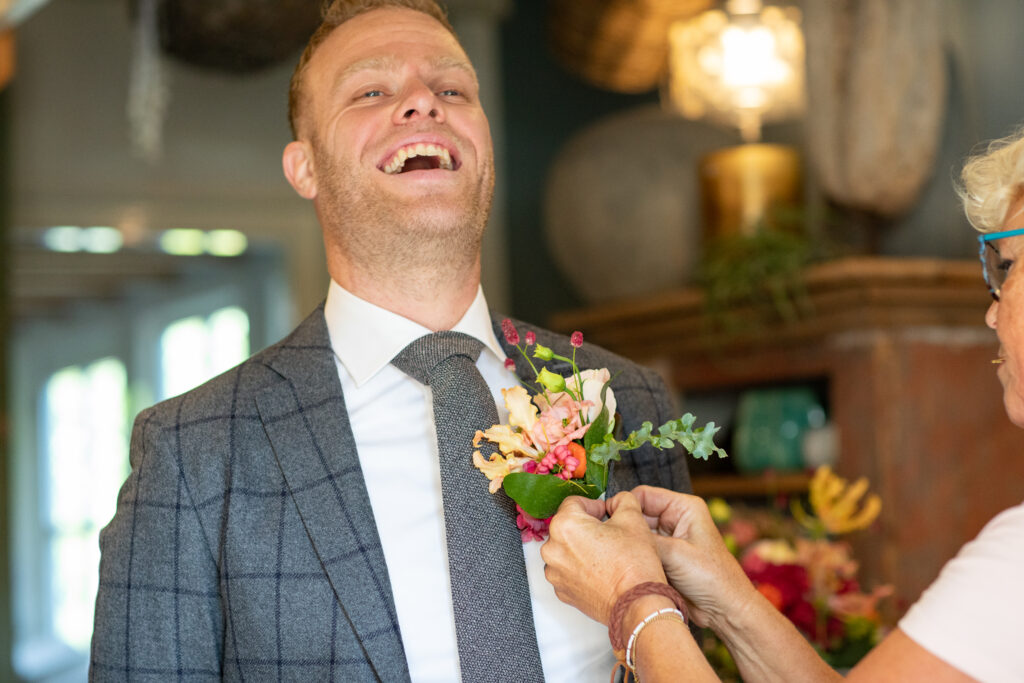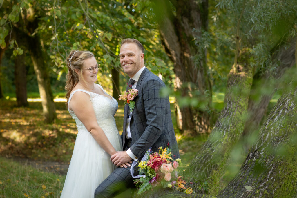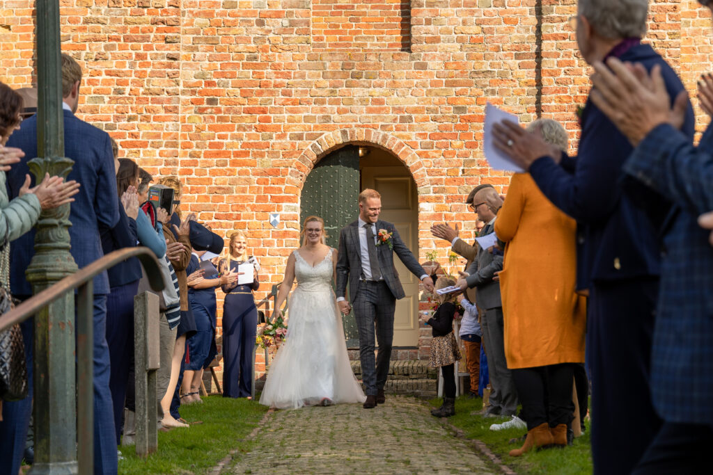 Twee jaar geleden hadden Harm-Jan & Elles alles uitgedacht en toen kwam C…. Na een paar keer bijschalen van de plannen bleef het minimale over van wat mogelijk was. Een corona proof bruiloft, met minimaal aantal gasten, een drive by corsage punt, alle gasten een borrelplankje mee naar huis zodat ze ’s avonds op Harm-Jan en Elles konden proosten. “Wanneer dit allemaal voorbij is gaan we het overnieuw doen, met kerkelijk huwelijk en een groot feest.” Dat is wat ze meteen zeiden. Maar in twee jaar tijd kan er een hoop veranderen. En waar ik bij andere bruidsparen ook wel andere inzichten zag wat van invloed was op hun trouw- of toekomstplannen veranderde er bij Harm- Jan en Elles ook het één en ander. Abel werd geboren! Maar het voornemen om hun huwelijk nog een keer af te maken met een inzegening én groot feest bleef staan. En zo was het in september tijd voor deel 2 van hun huwelijk. En waar het de vorige keer druilerig was, was het vandaag een prachtige nazomerdag ver in september. Dus ook de zon was bewaard voor deze deel 2. En een gave dag was het, met alles erop en eraan waar ze twee jaar op hadden moeten wachten. ínclusief de leuke (of wellicht uitdagende) stukjes van familie met wedstrijd tom pouce eten, biertje atten, vissen en spijker slaan. En daarna dansen, dansen en nog eens dansen!