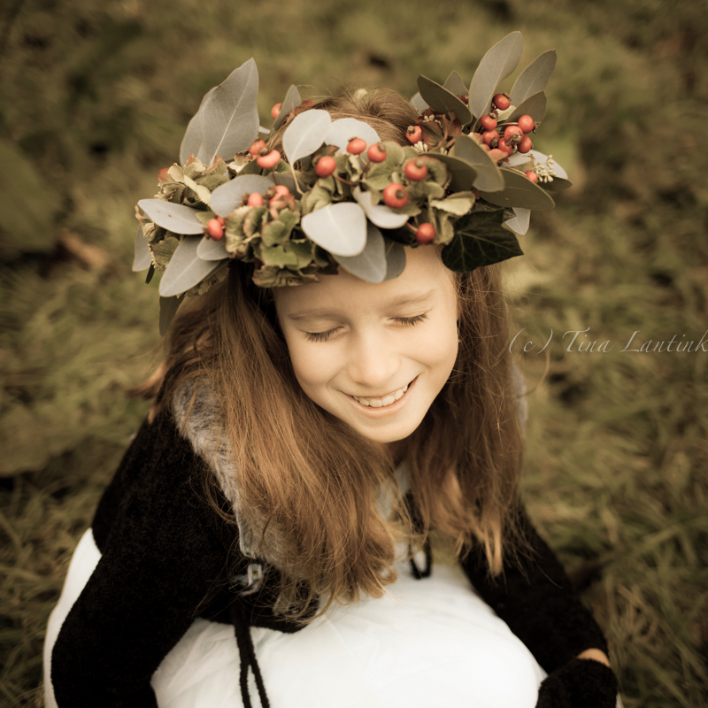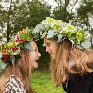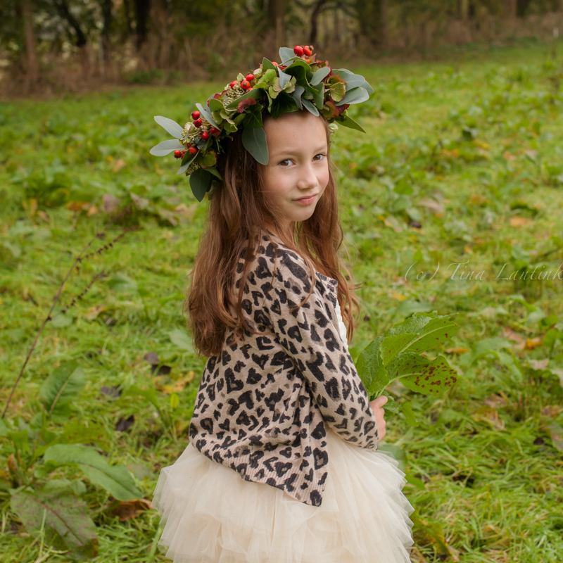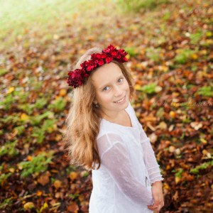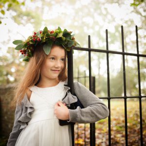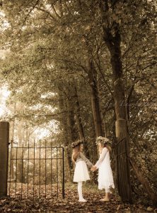 Nu het weer nog…… Het leek de slechtste dag van de week te worden, maar toen het moment van de afspraak daar was was het droog. Wel wat vochtig en mistig, maar dat bracht juist wel een bepaalde sfeer met zich mee. De meiden hadden er zin in. Kwamen in hun eerste outfit uit de auto met prachtige kransen op hun hoofden. Op het mooie, herfstige Maarhuizen hebben we een hele tijd foto’s gemaakt. En als ik eerlijk ben… als de meiden er nog niet zat van waren (of beter gezegd het niet koud kregen) had ik de hele dag waarschijnlijk wel door kunnen gaan! 🙂