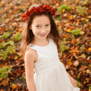 Volgens de moeders zijn de meisjes al sinds hun geboorte vriendinnen. Net als de moeders zelf dat zijn. Omdat ze niet bij elkaar in het dorp wonen hebben ze naast de verjaardagsfeestjes met klasgenoten ook altijd nog een feestje met z’n tweetjes. Dit keer kwam de moeder bij mij informeren naar de mogelijkheden van een fotofeestje. Samen zijn we aan het brainstormen gegaan om hier vorm aan te geven. Haar voorkeur ging wel uit naar buitenfoto’s en ze noemde de herfstkleuren. Tja, dan ben ik haast wel om! De herfst is zo prachtig! Nu is moeders zelf erg creatief met bloemen en na een oproep op Facebook voor bijpassende kleding was het plaatje wat we wilden realiseren wel compleet.