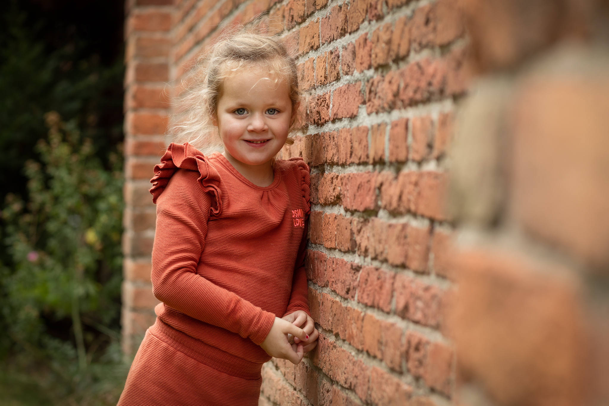 De herfst hing al in de lucht bij deze shoot. De herfst heeft zúlke prachtige kleuren. Ieder jaar iets om naar uit te kijken. Deze shoot voor opa en oma, maar uiteindelijk ook mét opa en oma vond plaats aan het begin van de herfst. De eerste blaadjes liggen op de grond, maar verder is er toch ook nog wel genoeg groen én (bonus!) een heerlijk zonnetje! Deze shoot is hét bewijs van hoe mooi het is wanneer je de kleuren van de kleding op elkaar afstemt. Ik geef dit altijd mee wanneer mensen een shoot boeken met meerdere personen. En hier zie je waarom: Het maakt het beeld rustiger, de kinderen bij elkaar zijn meer één geheel en de kleding leidt niet af van waar het om gaat: deze prachtige meisjes. Dat het ook nog mooie herfstkleuren zijn én ze prachtig matchen met de Eenrumer kerk is allemaal extra!