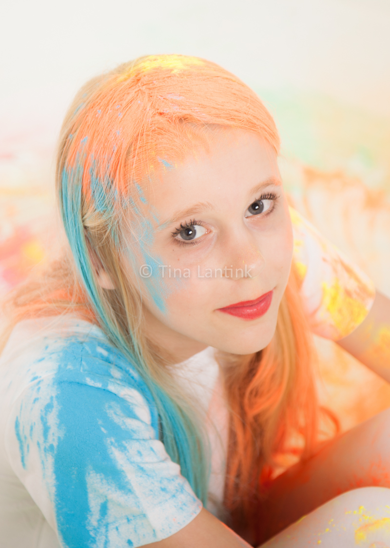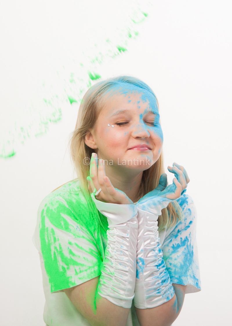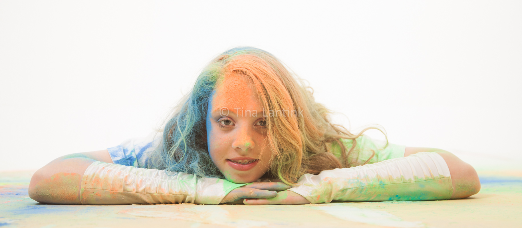 En samen met de meiden veranderde de studio echter ook in één groot stoffig kleurengeheel. Na de gebruikelijke prettige chaos na een fotofeestje kwam er dit keer ook nog zo’n twee uur dweilen bij! Maar het resultaat mocht er zijn. 🙂