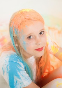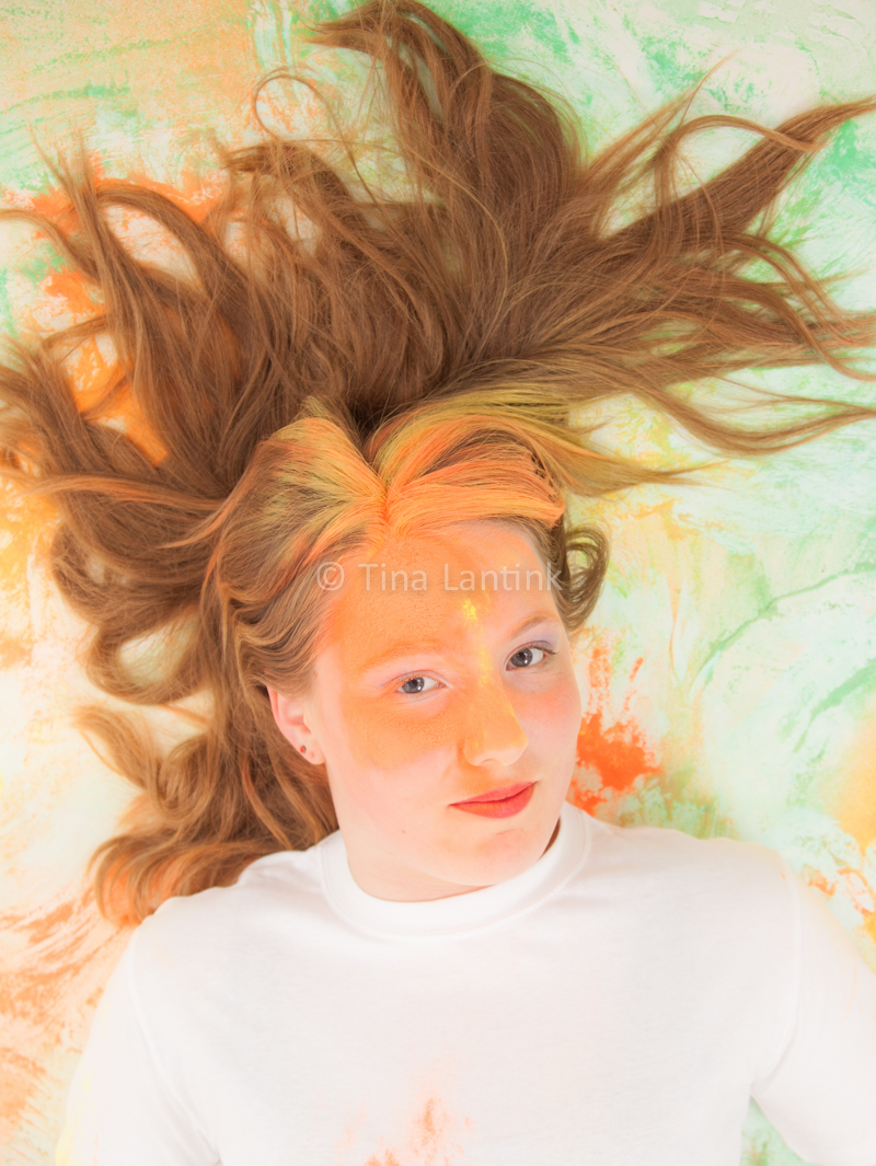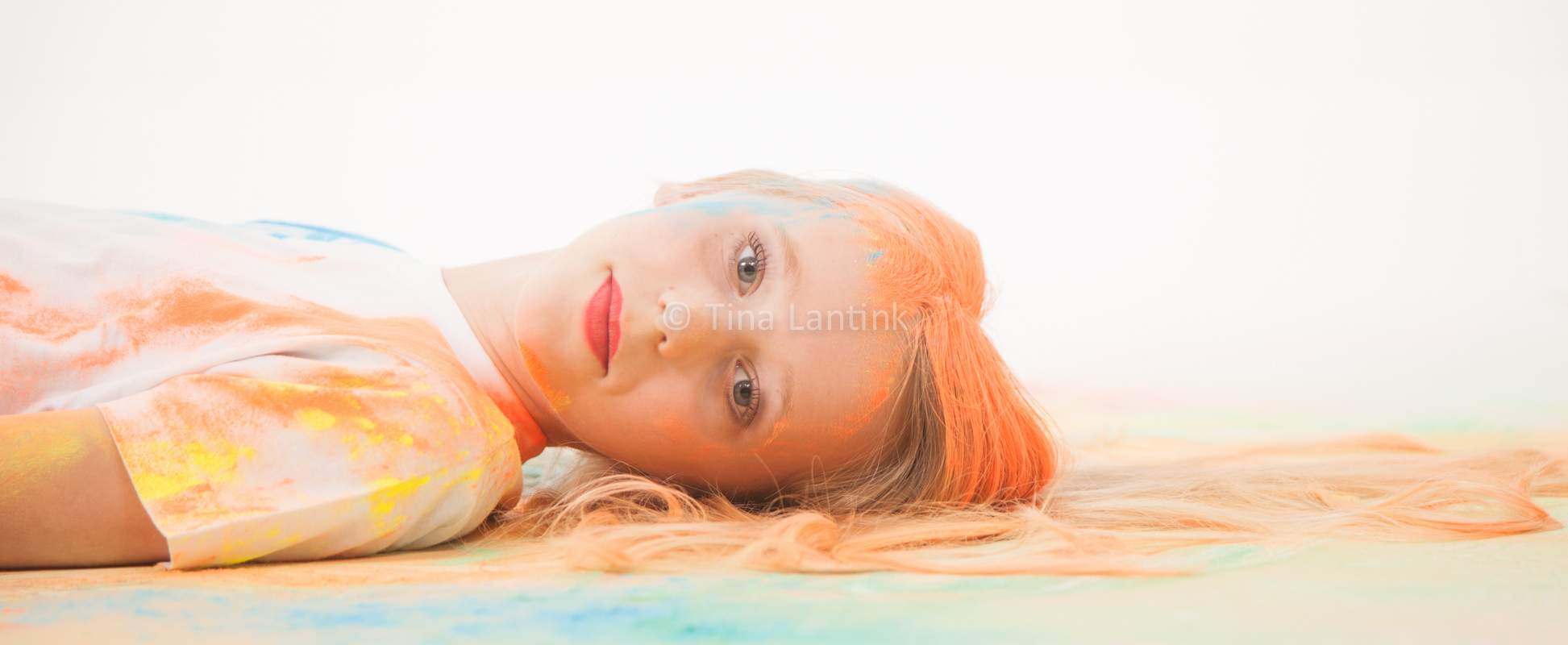 De vorige keer hadden we make-overs gedaan en om dat nu nog een keer weer te doen… Dat zou ik zelf een beetje jammer vinden. Toen heb ik voorgesteld om naast een paar mooie portretten met visagie daarnaast aan de slag te gaan met holi poeder. Een idee waar ik al langer mee liep, het was alleen nog niet uitgewerkt en uitgevoerd. Famke en haar moeder waren meteen enthousiast. En zo hebben we het dus gedaan. Het verschil was groot. Van mooie licht opgemaakt meiden veranderden ze langzaamaan in één groot kleurenpalet van poeder.