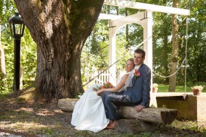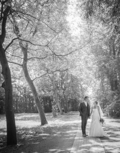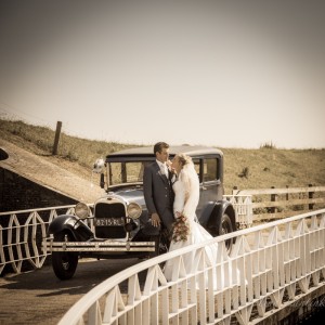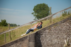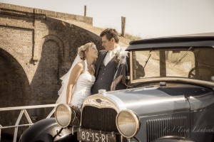 In een prachtige oldtimer, met naar later bleek ook oldtimer kwaaltjes, reden we over het platteland. Eerst bij de boerderij in het prachtige goudgele koren foto’s maken en later bij de sluis van Aduarderzijl en uiteindelijk bij de Allersmaborg in Ezinge. Dit was naast een fotolocatie ook de trouwlocatie . Een prachtige borg midden in de bossen waar je je helemaal alleen met je gezelschap waant. Johan en Tineke hadden en er daarnaast voor gezorgd dat de borg prachtig was aangekleed met bloemen. Een mooi extra sfeerbepalend element.