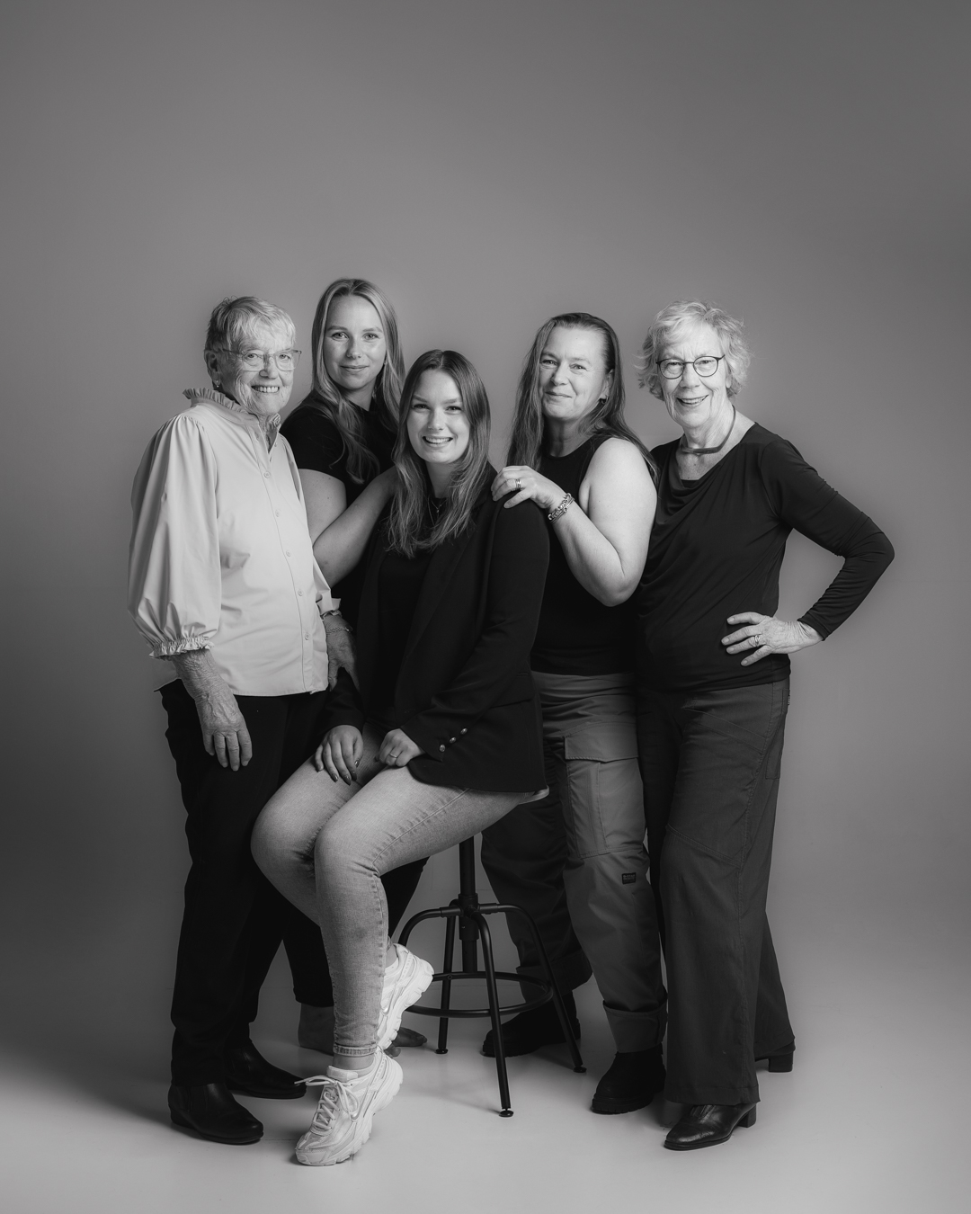 Voor mij ook op een ander vlak nog een bijzondere shoot. De állerlaatste in mijn eigen studio. En dat het deze shoot was met verschillende generaties vond ik eigenlijk wel heel mooi. Ik zie er een mooie symboliek in. Vanaf nu ben je van harte welkom in de studio in Haren om daar een mooi portret te laten maken!