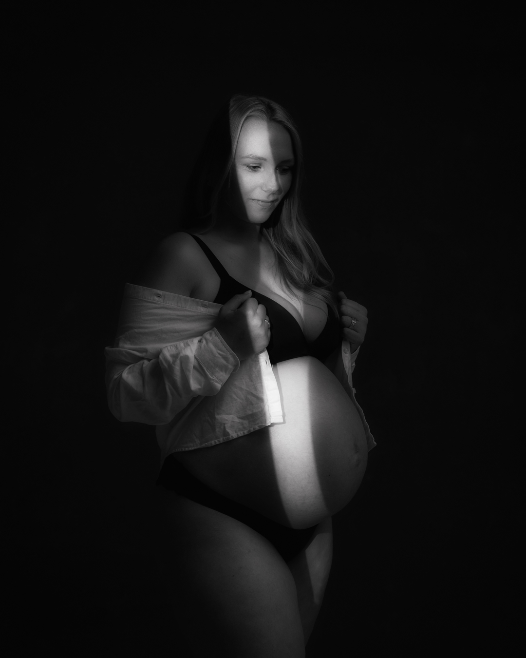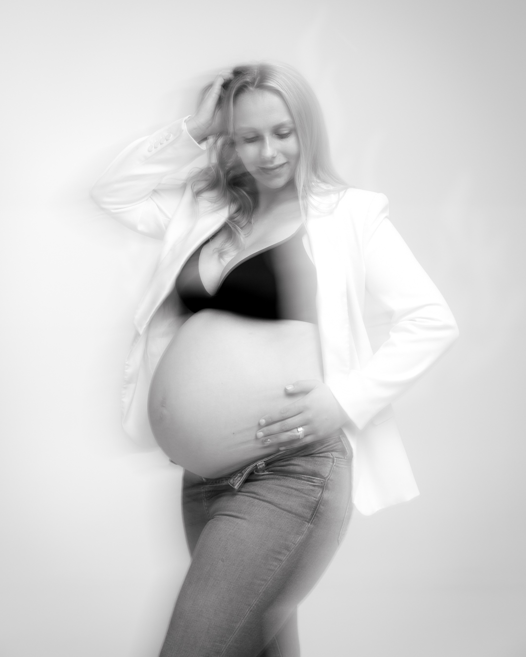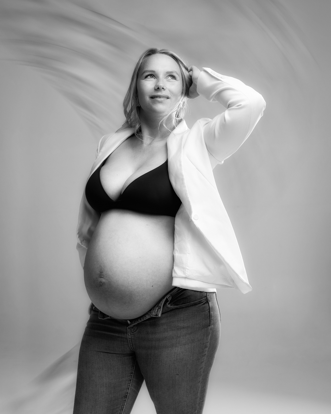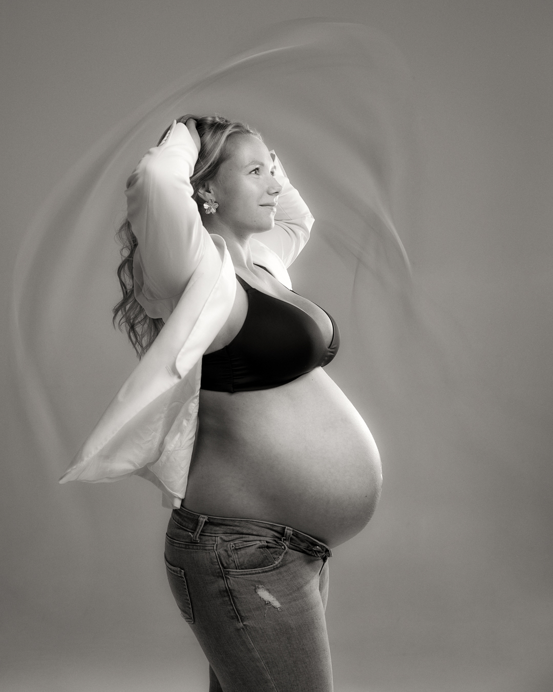 We hebben de shoot daarom in twee delen opgesplitst: We zijn begonnen met de foto’s van Lize en later samen met haar zusje. En na ongeveer een uurtje kwamen moeder en oma’s erbij. Prachtig, gezellig en bijzonder om drie generaties in de studio te hebben en de vierde generatie onderweg. 🤍