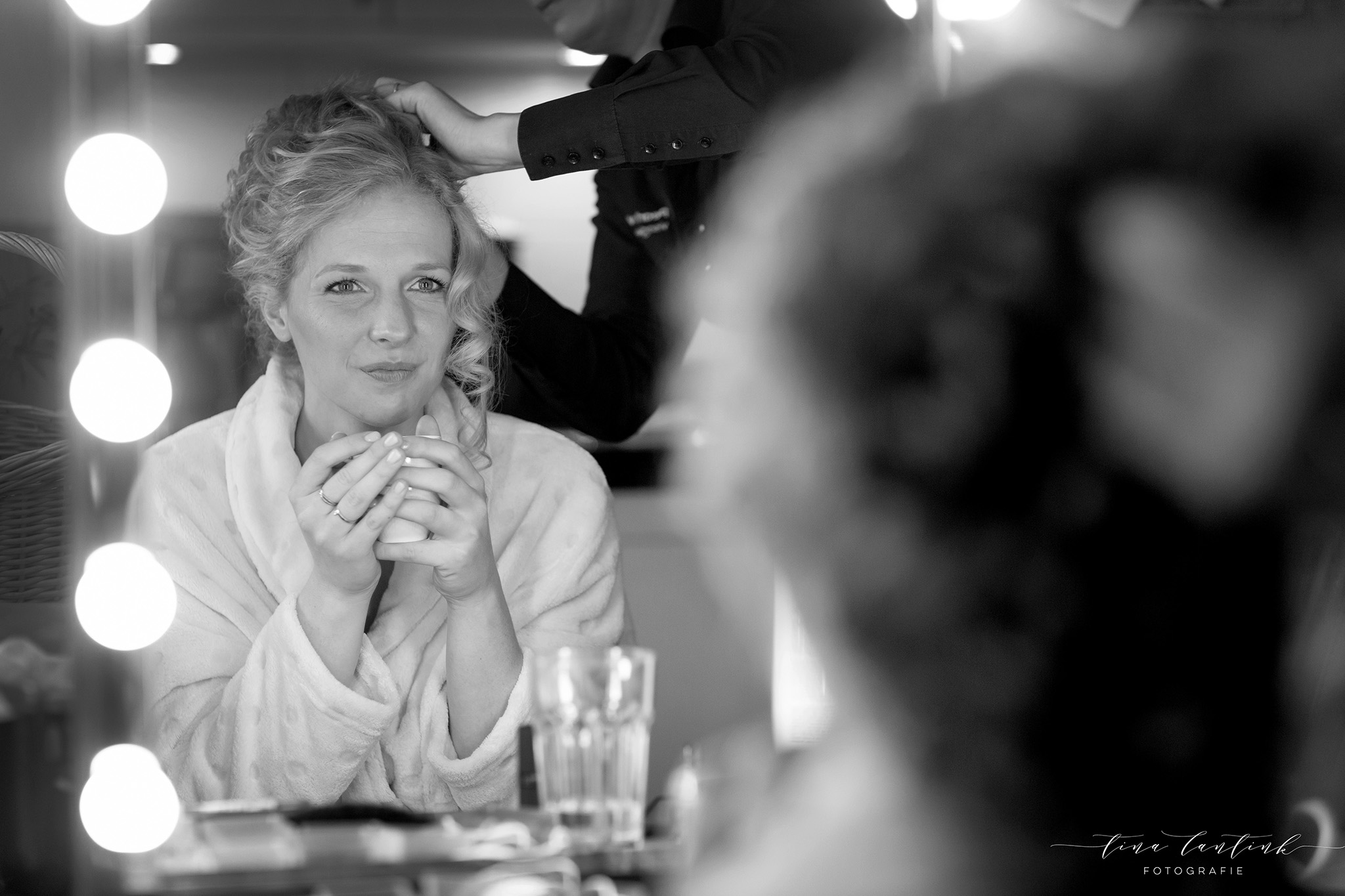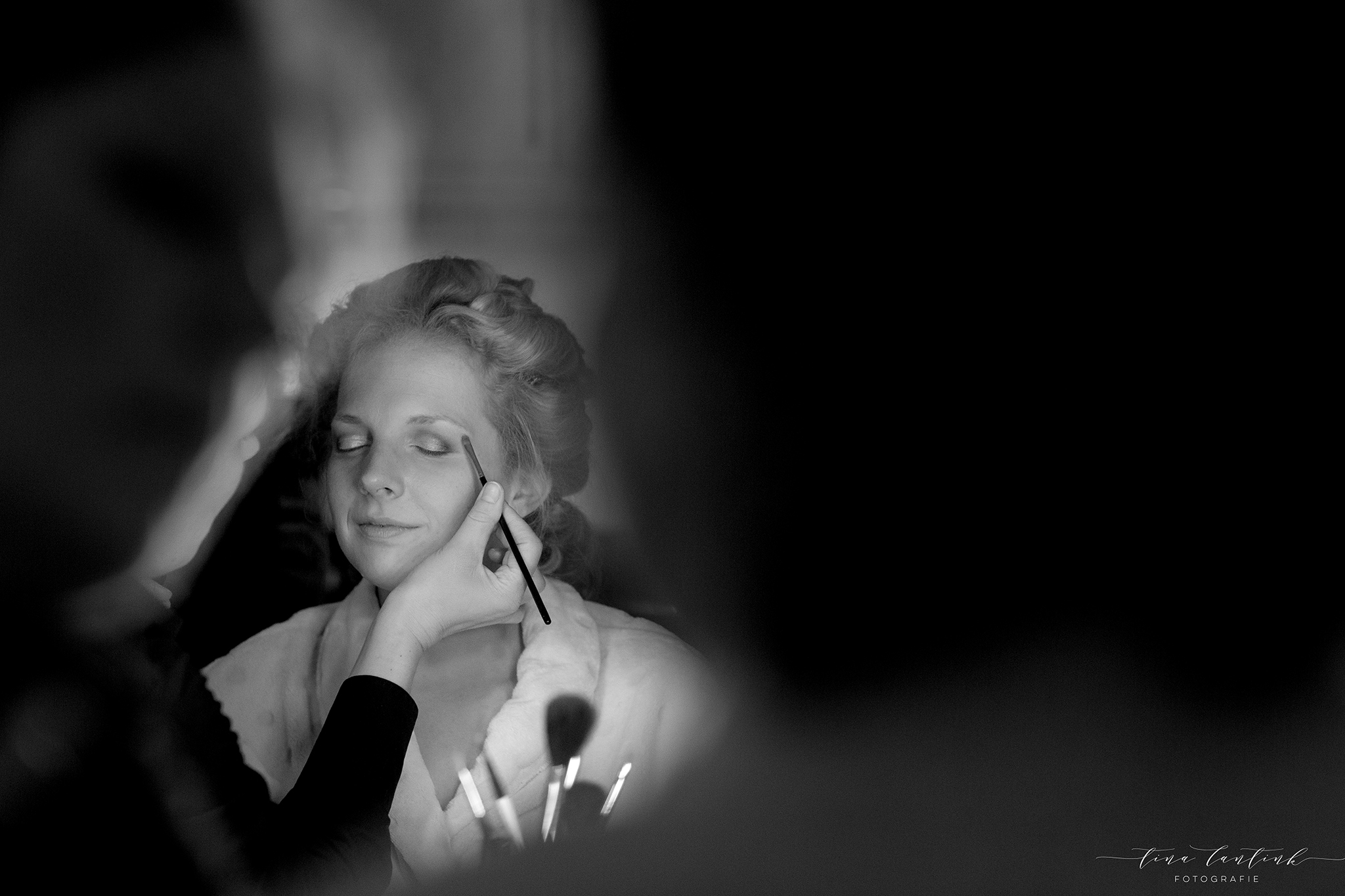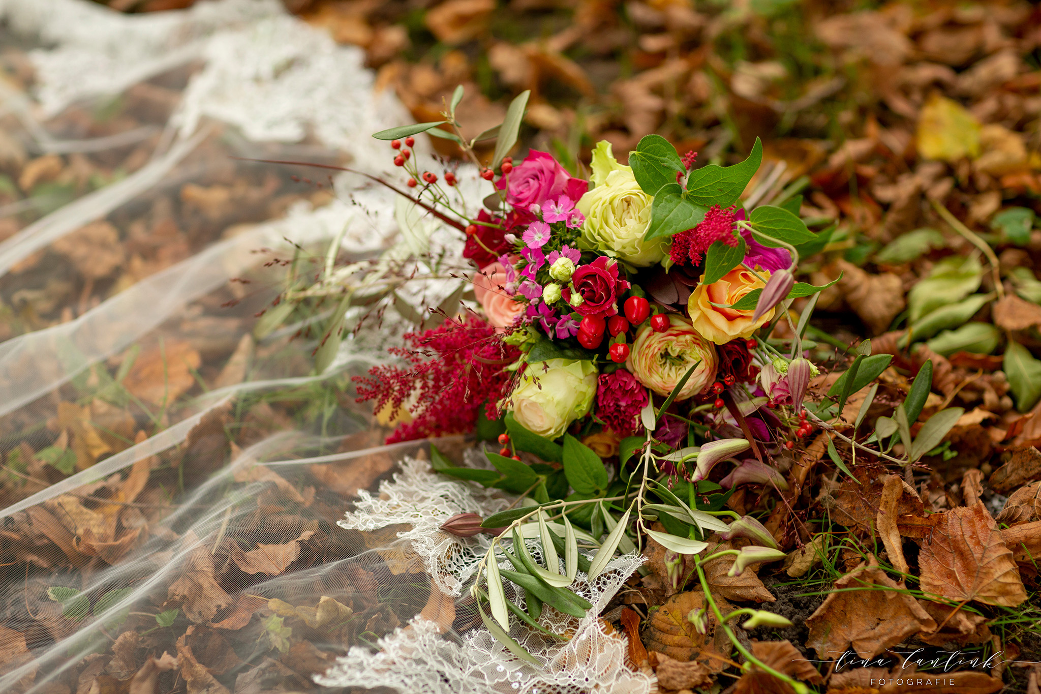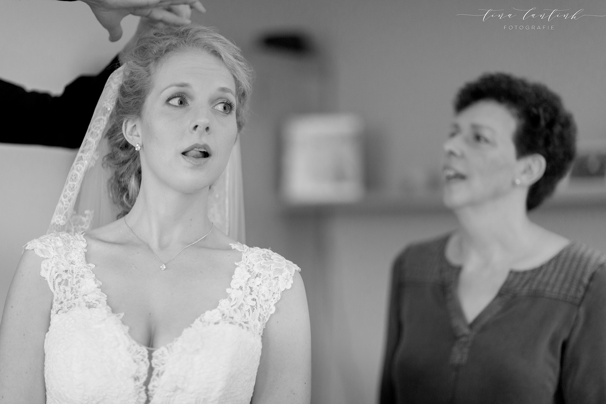 Na wat heen en weer pendelen tijdens zonsopgang tussen de boerderij waar Martinus zich voorbereidde en de boerderij waar Marianne was om de voorbereidingen vast te leggen was het moment daar waarop ze elkaar voor het eerst mochten zien en we vervolgens op locatie foto’s gingen maken. De trouwauto kwam niet opdagen, maar een belletje met vrienden en er kwam een geweldig alternatief voorrijden. Het was koud, heel erg koud. Reden te meer om ze lekker dicht tegen elkaar aan te laten poseren. Maar het was ook herfst, en herfst heeft prachtige kleuren wat weer een hoop goed maakte. Naast dat de schuur prachtig versierd was was het er ook lekker warm en zo konden we allemaal met soep, wat ook weer verzorgd werd door familie en vrienden, weer lekker op temperatuur komen na de reportage en voor de huwelijksvoltrekking. Het was een hele mooie dag, ondanks kou en veel regen later op de dag. Maar het was warm namelijk doordat de vriendschap en familiebanden overal doorheen te voelen waren. In de voorbereiding, tijdens de dag zelf, en ik weet zeker dat ze de dag erna ook weer allemaal klaar stonden om te helpen opruimen… <3