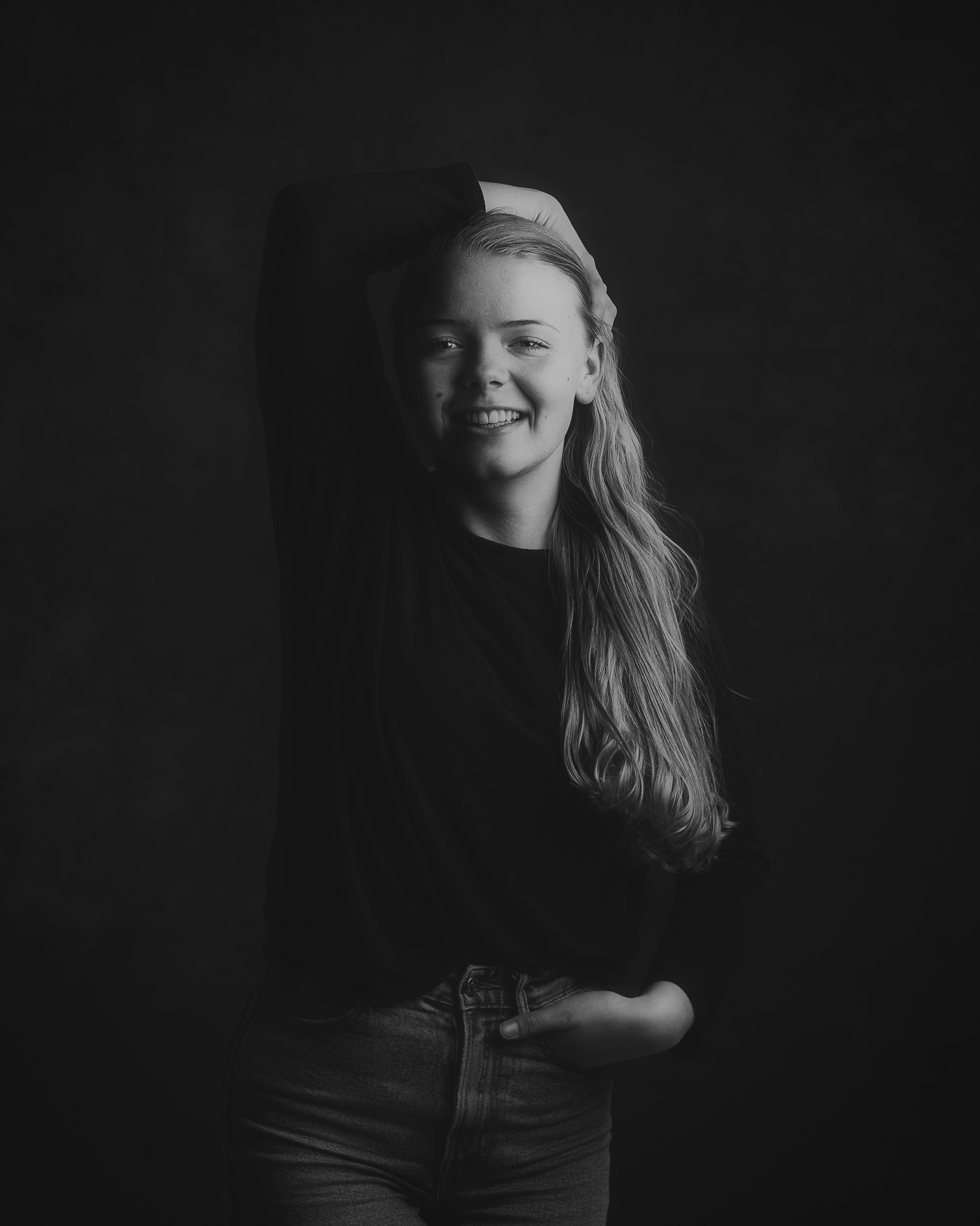 Voor haar 18e verjaardag had Meerke een fotoshoot gekregen. Mooie portretfoto’s van haar zelf was iets wat ze al heel erg lang wilde. De cadeaubon had ze gehad en toen liep het allemaal wat anders, kwam Corona tussendoor en kwa, de fotoshoot er eerst nog niet van. Maar nu was het dan zover. En ze had er heel veel zin in! Hoe leuk om zo’n enthousiast model in de studio te hebben met een tas vol met kleren. Vooraf had ze een moodboard gedeeld met mij waardoor ik wist wat voor sfeer ze in de foto’s wilde hebben. Dat werkte echt zo prettig. Samen hebben we de kleding geselecteerd voor de fotoshoot en toen zijn we aan de slag gegaan. Muziek aan, verschillende kleding, verschillende lichtopstellingen, verschillende achtergronden en natuurlijk de ventilator nog even vol aan voor mooi waaiend haar. 🙂 Het was een enorm leuke shoot. Meerke heeft genoten van haar verlate verjaardagscadeau en bonus, ze heeft er ook nog een hele mooie herinnering aan in de vorm van de foto’s.