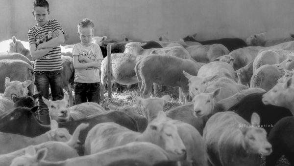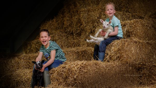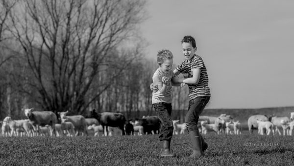 Dit jaar heb ik een jubileumactie gehouden. Mijn studio bestaat 10 jaar en daarom heb ik eerder dit jaar 10 fotoshoots verloot. De winnaars van de maand maart waren eind maart aan de beurt voor hun fotoshoot. Zij wonen op een schapenboerderij en maart zou dan prachtig zijn omdat dan de lammetjes geboren worden. Midden tussen alle schapen en lammetjes (op dat moment zo’n 800 in totaal!) heb ik deze twee stoere jongens mogen fotograferen. Ik vind het altijd een genot om op een boerderij te mogen fotograferen. En voor deze jongens is het hun thuis, dus helemaal vertrouwd en heerlijk om te zien zoals zij dan ook gewoon hun gang gaan. Op de strobalen klimmen, tussen de schapen in de schuur, gekke bekken trekken, met lammetjes in de weer, de kudde buiten opjutten, terwijl ze ook nog even met elkaar stoeien tussendoor. Echt jongens zoals jongens zijn!