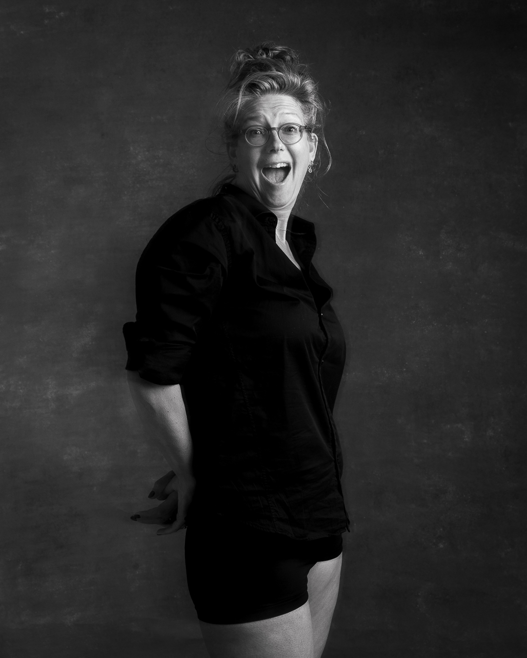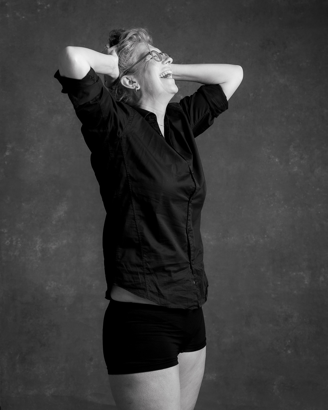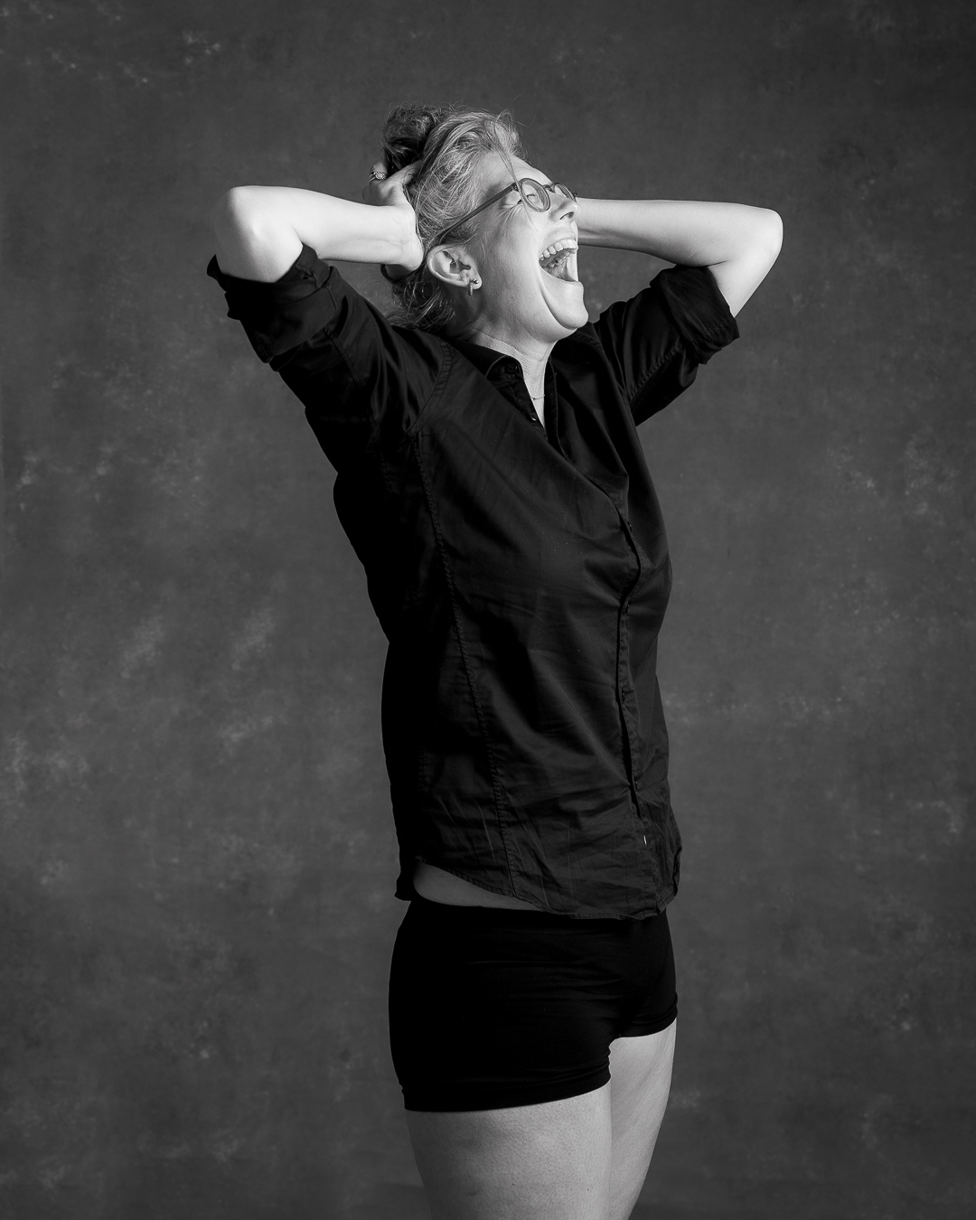 We hadden het erover dat hoewel de opdracht is ‘kom naar de studio zoals je normaal gesproken ook de deur uit zou gaan’ dit toch best een uitdaging blijkt te zijn. Je gaat er nu ineens over nadenken. We hadden het er ook over hoe gek dat eigenlijk is, want als je niet naar een fotoshoot gaat maar gewoon de deur uitgaat dan is het ook goed genoeg. En ja, waar maken we ons überhaupt over het algemeen druk om dingen niet er niet eens echt toe doen. Karolien had toch wat twijfel en daarom nog een paar extra kledingopties mee. De eerste stond vast. Dat merk ik vaker, daar is geen twijfel. De overige opties hebben we bekeken en besproken en een keus gemaakt. En dat was goed.