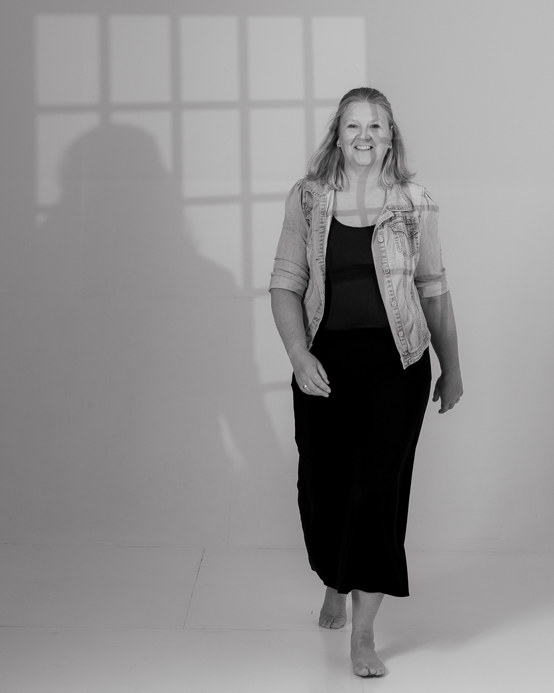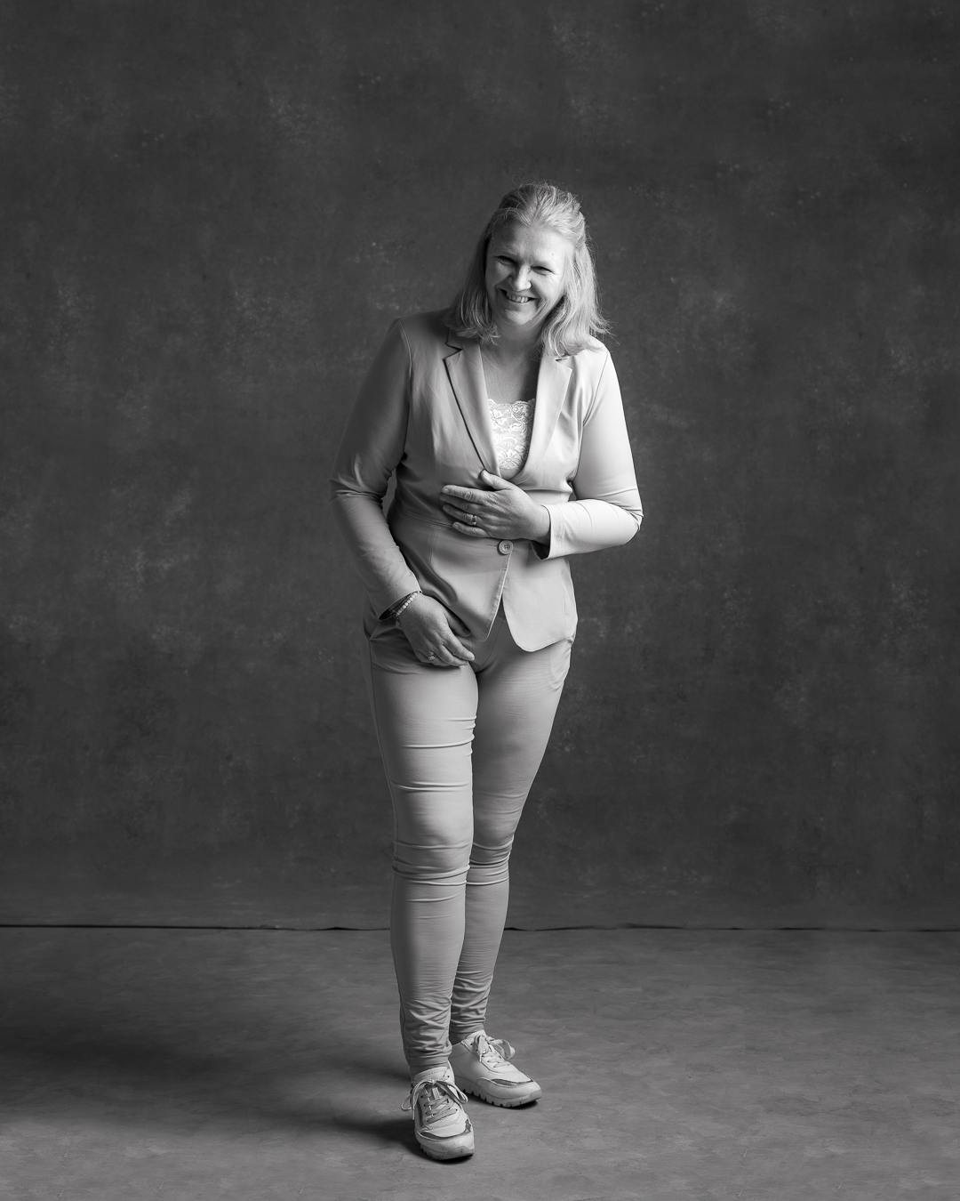 Prachtige oprechte gesprekken over haar persoonlijke ontdekkingsreis en hoe ze dit nu tot een boek aan het verwerken is. Nee, dit keer werd er niet gedanst. Want dat Rineke niet danst, daar was ze heel erg duidelijk in. Maar wandelen doet ze des te meer. Helemaal haar ding! En zo heb ik haar dan ook gefotografeerd: Wandelend in mijn studio.