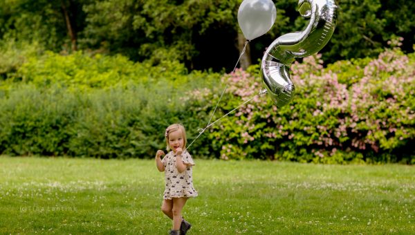 De winnaar van de fotoshoot in juni was Sabrina. Ze had de maand juni opgegeven omdat haar dochter Ruby in deze maand twee wordt. Dus met diverse outfits, hun hondje én een aantal heliumballonnen (waaronder een prachtige grote 2) struinden we door het stadspark.