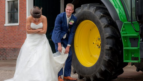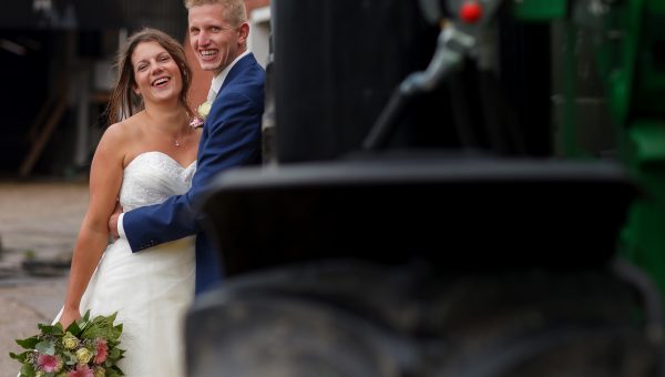 Vervolgens zijn we toch op locatie foto’s gaan maken. Wonder boven wonder hebben we alle foto’s buiten kunnen maken op de boerderij, achter de dijk bij de koeien en in de tuin van zaal Balk. Zelfs de zon kwam er nog even bij. Dat de zon ook echt eventjes geschenen heeft zagen ze eigenlijk pas toen ze laatst het album bij mij kwamen bekijken. Een goed teken, want daaruit blijkt dat als je het zó leuk met elkaar hebt het niet uitmaakt of het regent, stormt of dat de zon schijnt. Je hebt alleen maar oog voor elkaar.