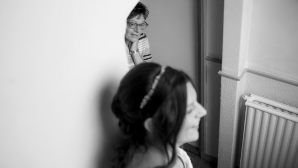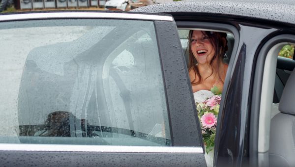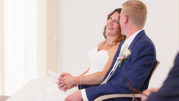 Wat een vrolijk stel! Het lijkt wel of Gerben & Ytje de hele dag door lol hebben met elkaar. Dat en de verliefde blikken die over en weer gingen. Zowel eerder dit jaar tijdens de loveshoot als op hun trouwdag afgelopen september. Lang hadden ze uitgekeken naar deze dag, en hoe dichterbij hij kwam hoe slechter de weersvoorspellingen werden. En helaas zaten de voorspellers er dit keer niet naast zoals ook wel eens het geval wil zijn. Het waaide hard, de regen kletterde tegen de ramen en het was alleen maar grijs. Tót Gerben aanbelde en Ytje en hij elkaar voor de eerste keer zagen. Daar was die lach weer, en die mooie blik en die knuffels.
