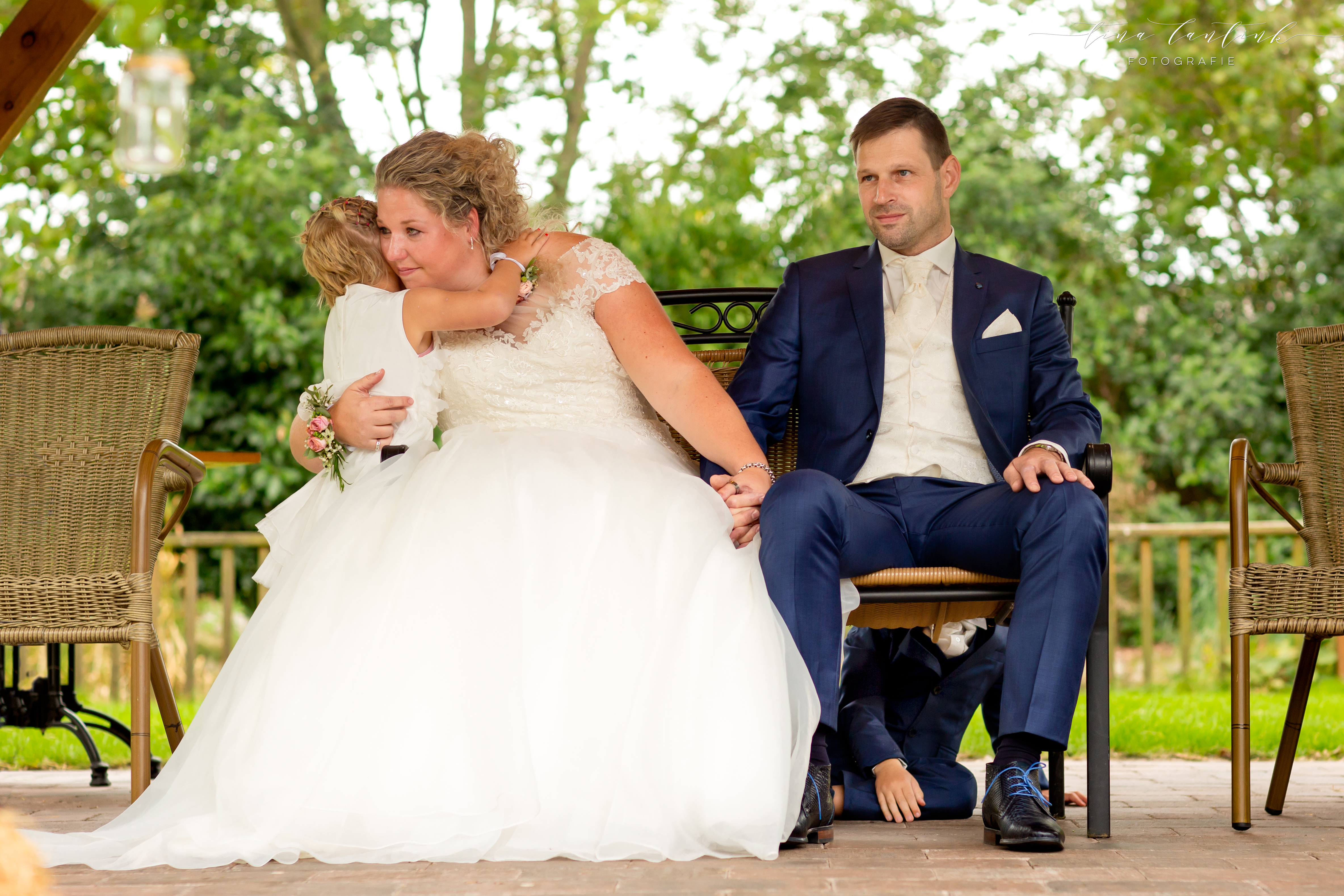 Op een andere, ook heel bijzondere, dag heb ik Gert & Jonien en de kinderen voor het eerst ontmoet. Ook toen heb ik foto’s van hen gemaakt. Hoe leuk was het dan ook dat ze naar aanleiding van die dag en het resultaat van de foto’s later dit jaar contact met me opnamen met de vraag of ik ook hun trouwreportage wilde maken. En zo was ik eind september weer op weg naar het mooie Drenthe! Een kleine trouwerij met familie en hele goede vrienden. Met zo’n klein en select gezelschap voel je de emotie en verbondenheid onderling nog meer vind ik altijd. Iedereen kent elkaar heel goed dus wellicht is dat ook verklaarbaar. Maar het is zo mooi om dat te mogen vastleggen, om daar bij te mogen zijn en zo even een beetje deel van uit te maken.